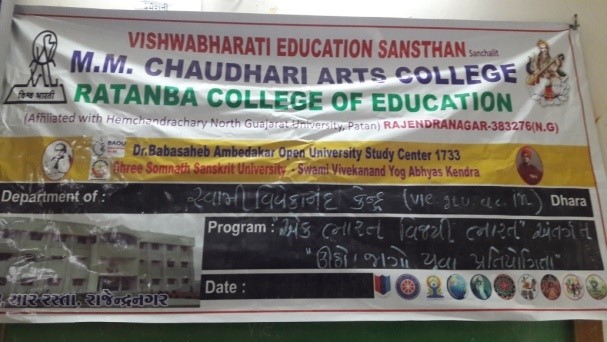 The institution provides three programmers to students namely B.A , M.A and B.EdAll the colleges are affiliated to Hemchandracharya North Gujarat University, Patan. The institution organizes different cultural activities. There are different committees in the college, the cultural committee, health committee, sports committee, time table committee, exam committee etc. Blood donation camps, AIDS Awareness Camps, Thalassamia Camps, in association with the Lions club, Leo club and Indian Red Cross Society.